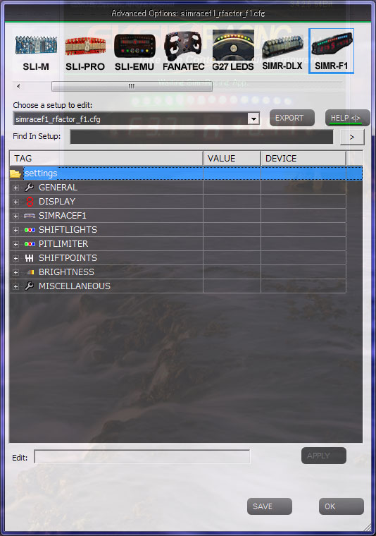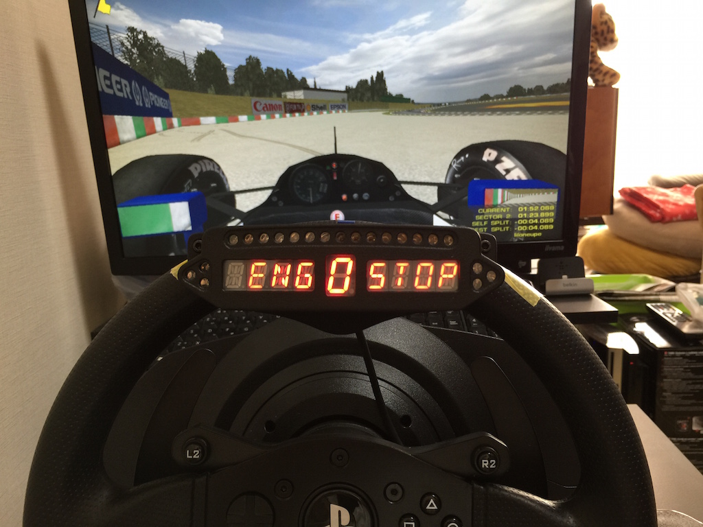 ちゃんとrFactor用プラグインもあって、インジケータ表示の細かい調整もここでできます。 ちなみにキットにも一部ついてますが、この基板は高いだけあって良く出来ていて、各種ボタンやロータリースイッチ、十字パッドまでも基板に配線することが出来、その動作もこのマネージャソフトで設定できます。 例えば、ロータリースイッチをカチカチ回すとインジケータの表示をラップタイムや燃料計、水温、スピードなどなど本物と同じように切り替えたり。 まァこの辺は、これまた電子工作をしないといけないので、また追々になりますが。(そもそもカッコ良く収めるにはF1ステアリングか何かが要りますが)