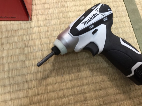 これをインパクトドライバーに取り付け、1.5mmくらいの鉄板をグリグリと線を引いた位置まで広げる加工をします。