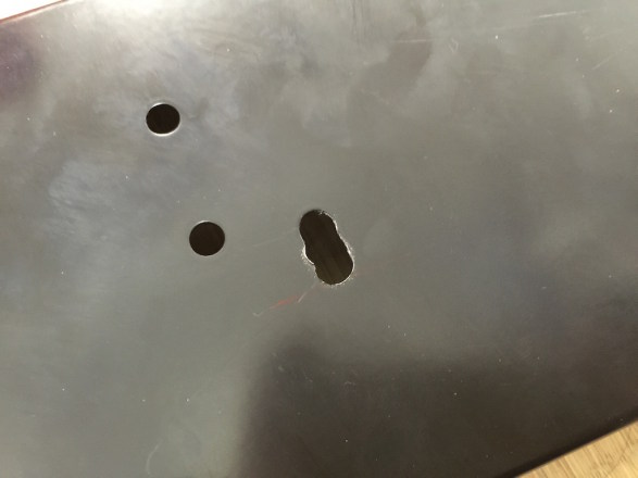 ・・・まあ長穴加工は難しいのでキレイには行きませんが、どうせハンコンの下になって見えない穴だし、実用一辺倒で加工しました。