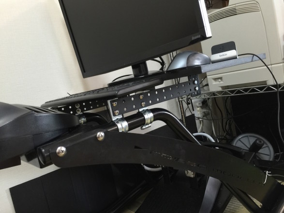 ネジを使用しないでクランプするパーツもあったのですが、太ももに当たるのが邪魔で、前のPCラックのテーブルの固定も穴を開けて直接ボルト留めで解決していたので、クランプパーツ自体捨ててしまったので、やむなく鉄板の穴を長穴加工するためにロータリーヤスリを購入しました。