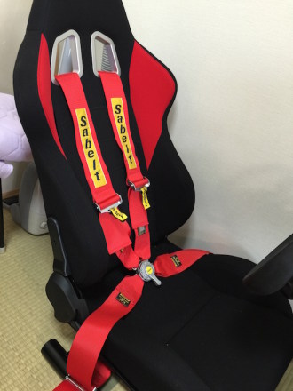 プレイシートを買ったら絶対一緒に買うねん、と決めていたレーシングハーネスを取り付け。