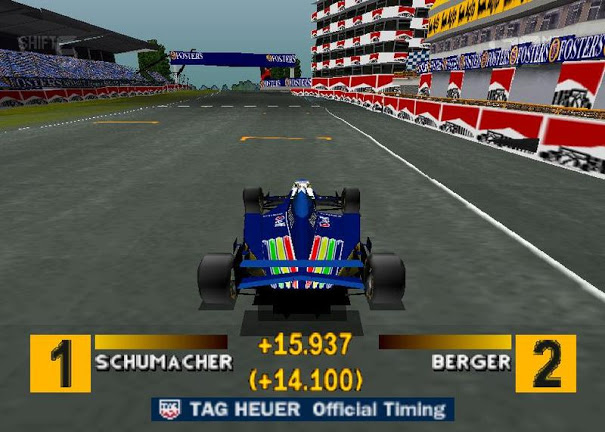 ベタな名前だなあと思い、実名を使用!とかのアピールポイントが余計に、他のゲームと同じゲーム性の中途半端さをイメージさせて、最初は良い印象はありませんでしたが(95年の鈴鹿の日本GPにあったデモブースで遊んでみても印象は変わりませんでした)、いざ発売されてとりあえずさほど期待はせずに購入してみると、意外にもまともなゲーム性というか、リアリティというか、ちゃんとAIとバトル出来るゲームバランスが良く、ファミコンのファミリーサーキット以来のハマり度で遊んだゲームとなりました。