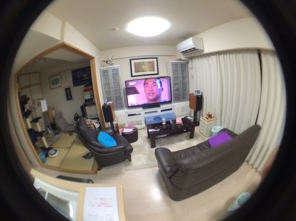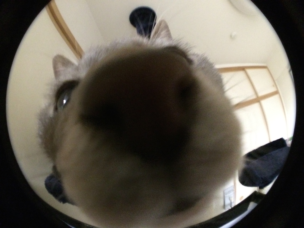 これは魚眼レンズですが、なかなかオモシロイ写真が撮れます。動画なんかも結構いいかも。(ネコじゃなくカピバラが写ってますが) でも、レンズの上にレンズをつけるので画質は更に落ちます。(この画像はiPhoneの標準カメラアプリで撮ったのでフツーに見えますが) MacBookにつけてCamCamとかで見てみると、ボヤボヤでほとんど何も分かりません。 これはむしろ旅行に持って行って使ったほうが良さそうです。