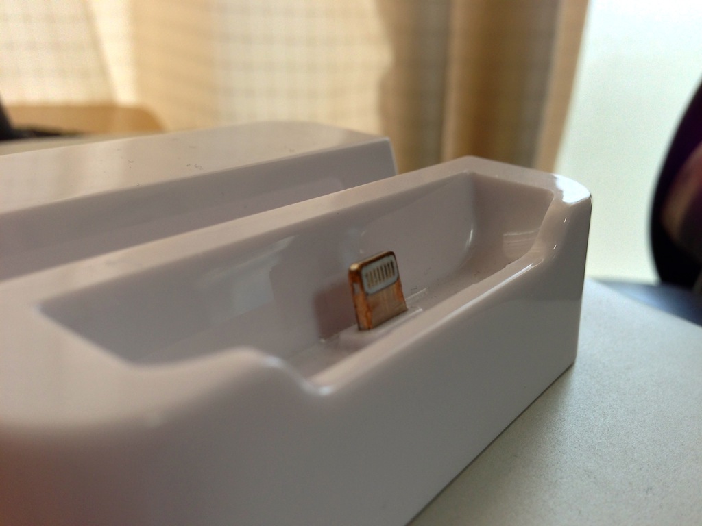Lightnigコネクタがやたら硬くて、抜き差しが尋常じゃない状態だったので、コネクタ表面をリューターで削って緩めにしてみたのですが、 挿した状態でiPhoneを少し動かすだけで接触が悪くなり、充電出来なくなってしまったのです。 コネクタを削ったせいかと思ってましたが、Amazonの評価を見ていると、同じ製品に限らず同様の中国製はほとんど、フツーに使用していても数週間で接触が悪くなったり、サイアクだと端子がクレードルから抜け落ちたりと、ロクでもない状態のようです。
