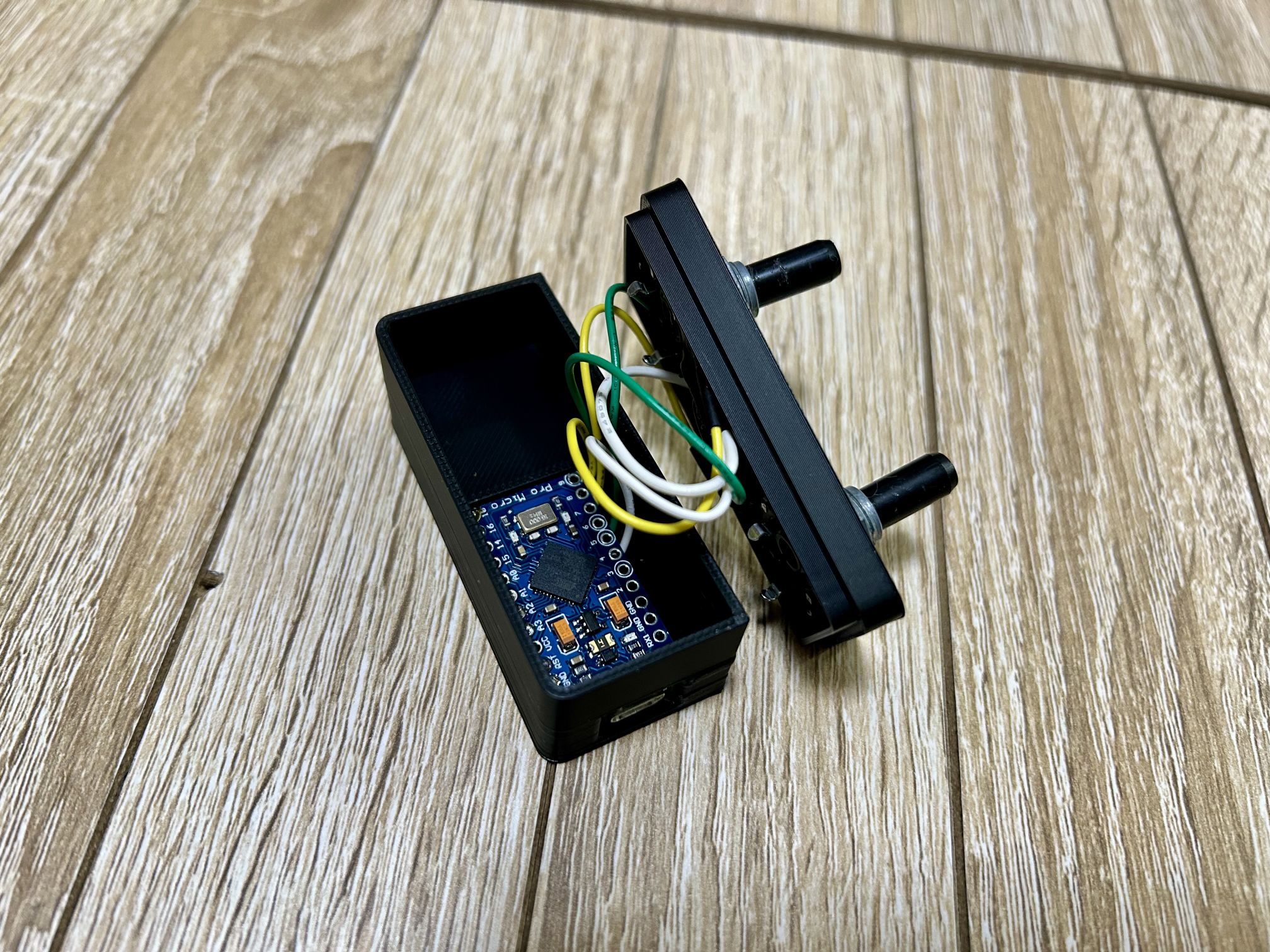 幸い、放置パーツの中にArduino Pro Microとロータリーエンコーダが残っていたので、それを使用してIDEを書き込み、配線をしてテストしてみると、あっさり動作するデバイスが出来ました。