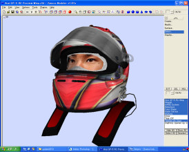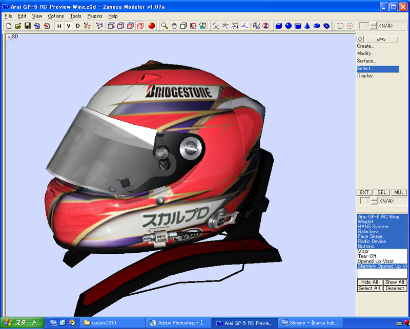 高解像度なヘルメット画像があったので、それをなんとか平面データに引き伸ばして、超カッチョ良いアライメットに貼り付けました。
