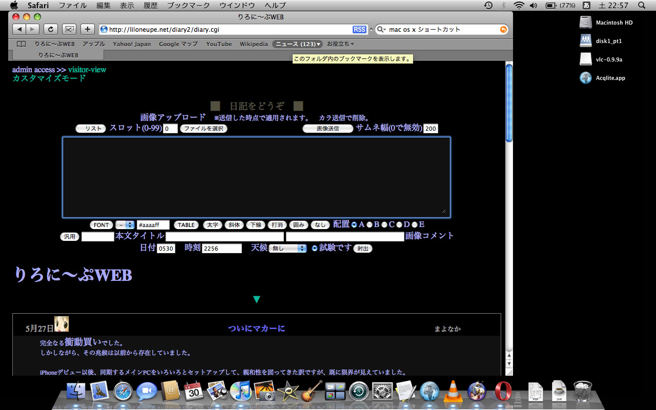 早速、沼氏が日記スクリプトのSafari対応をしてくれたので、テスト投稿。