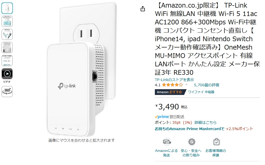 Wi-Fi中継器を買いました。TP-LinkのRE330。