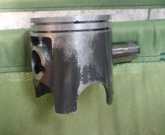 さらにはピストンリング。 工場長いわく、ピストン周りの部品、ピストンピンやベアリング、クリップ等も換えた方がよいとのことで、値段を出してもらって、いざ注文しよう!・・・ってトコまで来てオレ様が、 「ピストンのスカート部分のコーティングみたいのが剥がれてるんやけど・・・」 と口走ったからさあ大変。