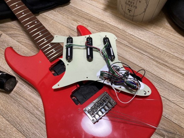 ものすごくノイジーです。繋いだだけで「ジー」とハムノイズが載っていて、あまつさえ弦に指を置くとさらにノイズが増幅されます。