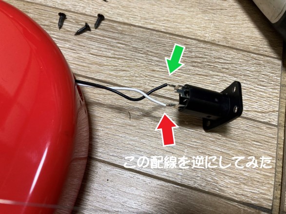 そして何があかんのかは分かりませんが、試しにギターケーブルのコネクタに繋がっている配線を逆にしてみました。