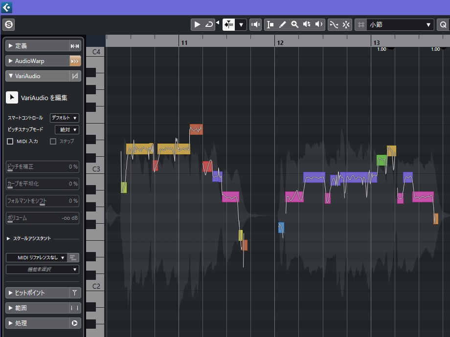 尚、現在の部活のボーカル君が唄があまりうまくありません。(ボーカルなのに) そこでCubaseの素晴らしい機能が真価を発揮します。「VariAudio」です。
