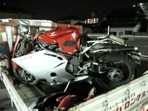 | りろに〜ぷ ちなみにポケットに入れてた携帯と財布は無傷でした。さすがはライディングジャケットやね〜ボロボロになったけど りちゃ〜ど tomoare りちゃ〜ど 全損お見舞い申し上げます。ともあれお体が無事のようで何よりです。140kmで事故って普通の場合なら・・・ りろに〜ぷ ああ、どうもです。 体は擦り傷だらけですが、骨は異常ないようです。病院行ってないのでテキトーですが・・・ りちゃ〜ど 車両保険は加入されていたのでしょうか? りろに〜ぷ バイクの車両保険は大概の保険商品にないんです。あってもものすごく高いってヤツです。なので入ってません。 tera おいおい!大丈夫かよ!! りちゃ〜ど 一応病院に りちゃ〜ど 行かれた方が良いのではないでしょうか。擦り傷だからといって油断大敵 あぐぅ う、うぐぅ りろに〜ぷ '06 F4-1000Rは174馬力、オレのF4Sより42馬力アップですよ! めーだい もう2輪引退しとけ。二輪魂と体どっちが大事なんだ! |