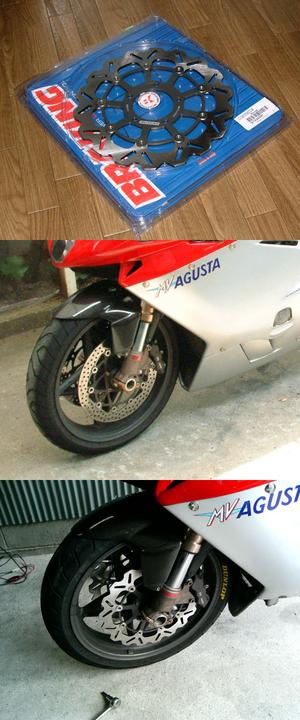 片効き状態のアプリリアのほうも、同じ値段であるので、やはり今のうちにアプリリア用を買っとくべきか。(ホントはこっちが先だろ) bremboの純正を頼んでもストリート用でほぼ同じ値段だから、BRAKINGのレーシングのほうがイイ。軽いし。カッコイイし。