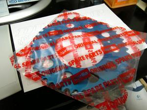 ノーマルの丁数がいくつだったかよく分かりませんが(42Tかな?)、加速を良くするためにちょい歯数の多いヤツを選びました。 ちゅーか、ずいぶん前からこのデイトナ製のスプロケットは42〜44Tが出品され続けていて、しかも1500円という破格値で、これはきっとどっかのショップが在庫整理のために出してんだな、とか思っていたわけですが、あまりにも頻繁に出品されるので、急いで落札する必要はないと様子見していました。