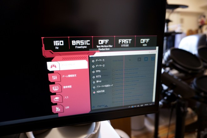 なおこのモニタはHDRにも対応していますが、これを設定するとOculus Quest2(今はOculusじゃなくてMetaだが)を繋いでバーチャルデスクトップを表示させるとバグるのでオフにしてあります。 どのみち試しにゲーム等でHDRを有効にして見てみましたが、自分の目が鈍感なのかオンでもオフでも違いが分からん。(ゲームにも寄るかも知れんが) 有機ELとかミニLED液晶とかであればもっと違うかも知れませんが、フツーのIPSモニタなのでさほど影響もないのでしょう。十分キレイです。 ちなみにウルトラワイドなので3画面なくてもレースゲームに役立つかと少し期待してプレイしてみましたが、結局3画面やVRには敵わない。 辛うじて運転席側のバックミラーが見えるようになるくらいで、これまでとたいして見え方も変わらんので、これで真面目にレースする気にはならないですね。 あと湾曲具合はとても自然なため、違和感もない代わりに新鮮味もなし。 横から見たときに、おっ湾曲してるやんけ、と思うだけ。