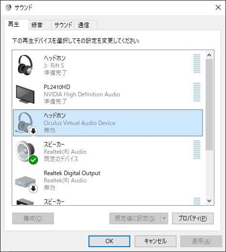 というよりトラブルでもなんでもなく、ただ単にWindowsのサウンド設定で「Oculus Virtual Audio Device」が無効化されていただけ。