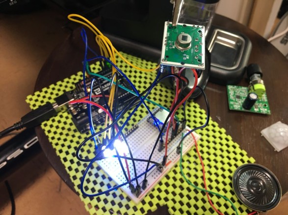 なんだかんだでテスト基盤を組み立てて、プログラミングも試行錯誤しながら(いろいろググって)設計し、なんとか理想の動作をするようになりました。 ボイスはとりあえず「2001年」と「2010年」から実際にHALがしゃべっているシーンを切り出して、印象的なセリフ15種類をMP3化しましたが、 プログラムではただ単にランダムにSDカード内のMP3を再生してるだけなので、あとから追加してもほぼプログラム変更せずに対応できます。 もちろんただのMP3なので、セリフ以外の音楽とかでもなんでもいけます。