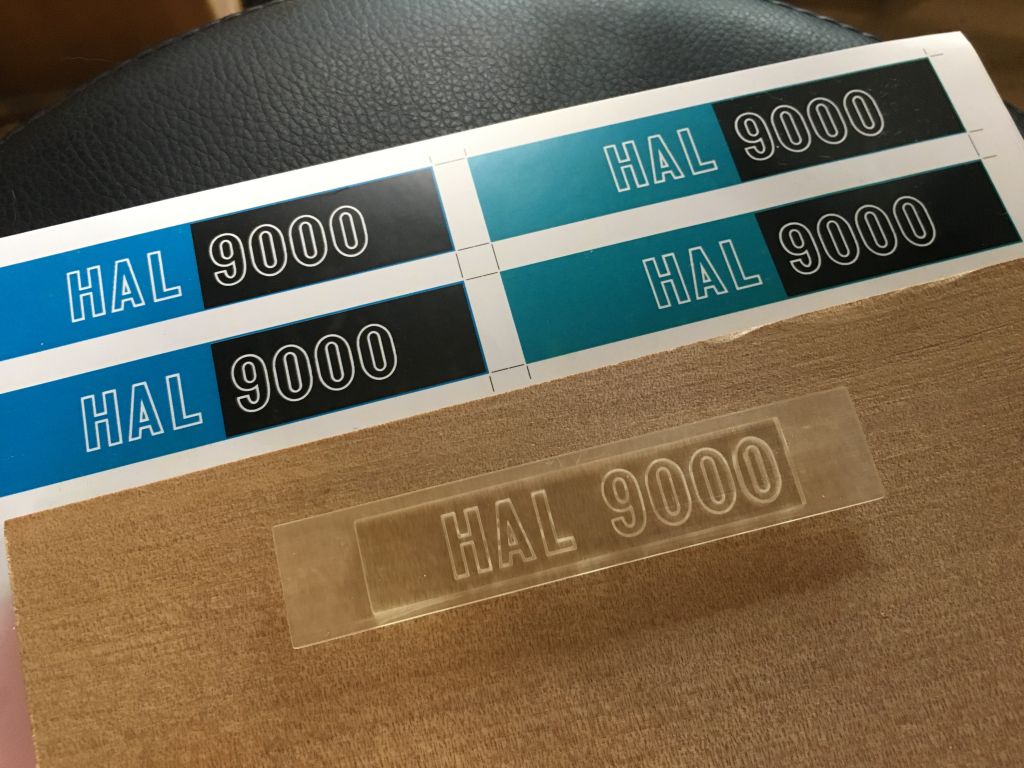 なお最大の勘違いをしていたのはフロントパネル部分です。 キットのエンボスモールドやググって調べた画像を元に、映画プロップモデルのフロントパネルは木製であると結論を出し、薄くて歪みが少なくて且つ木目が綺麗な素材として5o厚のアガチス材を使ったのですが、やはりこれを黒塗装しても綺麗な木目は出ない。 で、木目がエンボス加工されたカッティングシートで解決しようとしたのですが・・・確かに貼ってみたら結構カッコ良かったものの、完成まであと一歩という先週の段階で初めて気づきました。