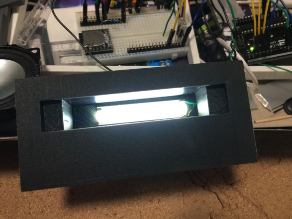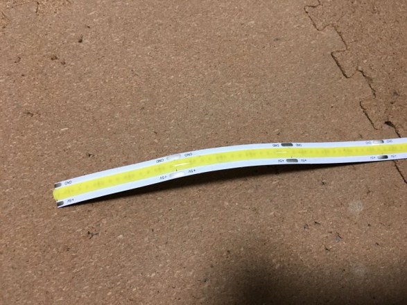 ちなみにロゴを光らせるのも一筋縄ではいきませんでした。 文字だけ(それも白いとこだけ)光らせるには複雑なマスキングが必要なので、まずはモデリングで裏から文字をエンボス加工し、文字以外を黒塗装して裏からLEDで照らしてみましたが・・・ロゴパネルそのもののアイデアはともかく、LED2個では光ムラが酷すぎる。 LEDを面で光らせるために、クリアパイプと光ファイバーの束を試してみましたが・・・そんな簡単に出来るもんではなく。 結局LEDテープという製品に落ち着きました。