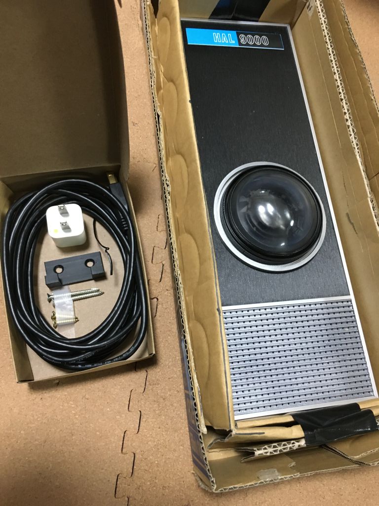 が、2018年のIMAXでのリバイバル上映(これはフィルムではなくデジタルリマスター版)に一緒に観に行った友人のバーマスターがやたらハマってしまい、 それ以降「2001年」グッズやらポスターやらを買い集め、さらには翌年(2019年)に発売されることになったHAL9000のプラモデルも予約していました。 海外製とはいえ、アマゾンで6000円台という割と高価格なプラモデルで、自分は当初まったく興味がなかったのですが、 春発売のはずが秋に延期されたりしているうちに、なんか興味がわいてきて、気づいたら自分も予約してしまっていました。