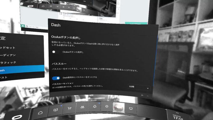 ちなみに一つだけ残念なことがあります。 初期版CV1に付属していたOculusリモートをRift Sに紐付けは出来ず、使えなくなってしまいました。 普段ドライブシムしかしないので、コントローラといえばハンドルとペダル。OculusのTouchコントローラはほぼ触ることはないので、VR画面の簡単な操作が出来るOculusリモートを重宝いしていたのですが、使えなくなってしまったので困りました。 Oculus Home画面からデスクトップ画面を表示させるのに使っていたわけですが、それが出来ないので初めからデスクトップを表示させられる「バーチャルデスクトップ」アプリを久々に使うことにしました。