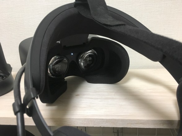 尚このモノクロ映像(パススルー機能)は、いつでも呼び出せるので、HMDを被ったまま外の状況が分かるようになって便利です。 ただし、期待したほど綺麗な画質ではないので、文字とかを読めるほどではないため、やはりこれまでどおり鼻の上の隙間から外を見たいのだが、Rift Sでは鼻部分にゴムのガードがつき、隙間がほぼなくなっているので外が見れない。 なのでそのゴムガードを外したところ、CV1と同じように外が見えるようになりました。